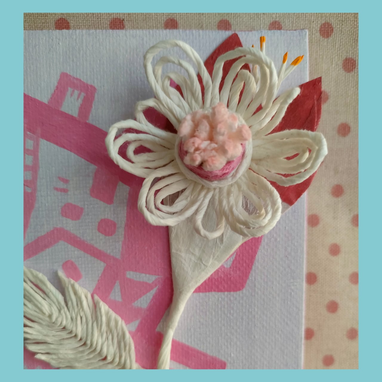 ※キャンバス・アクリル絵の具・飯田水引・毛糸・紙・紙紐・マグネットを使用